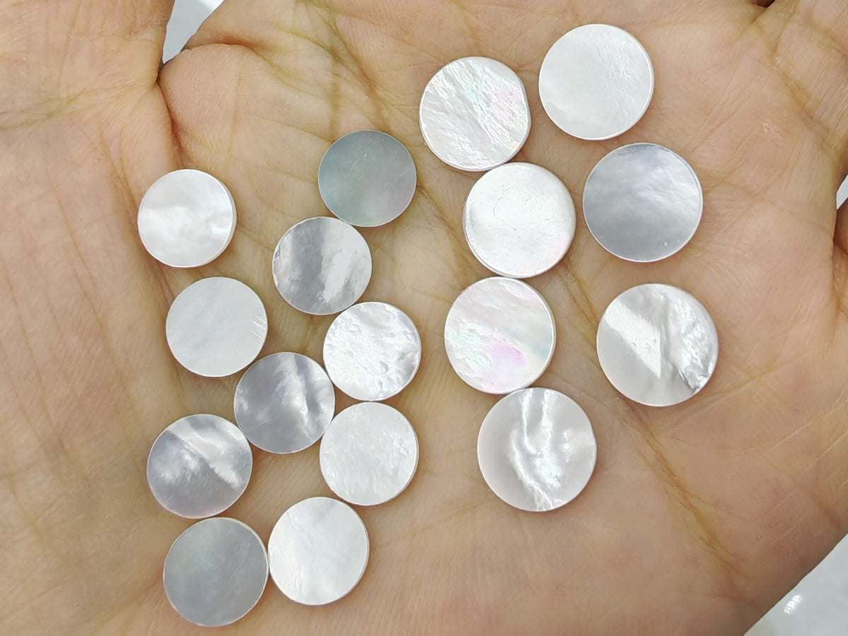 Natural white mother of pearl MOP undrilled flat coin beads for jewelry making.