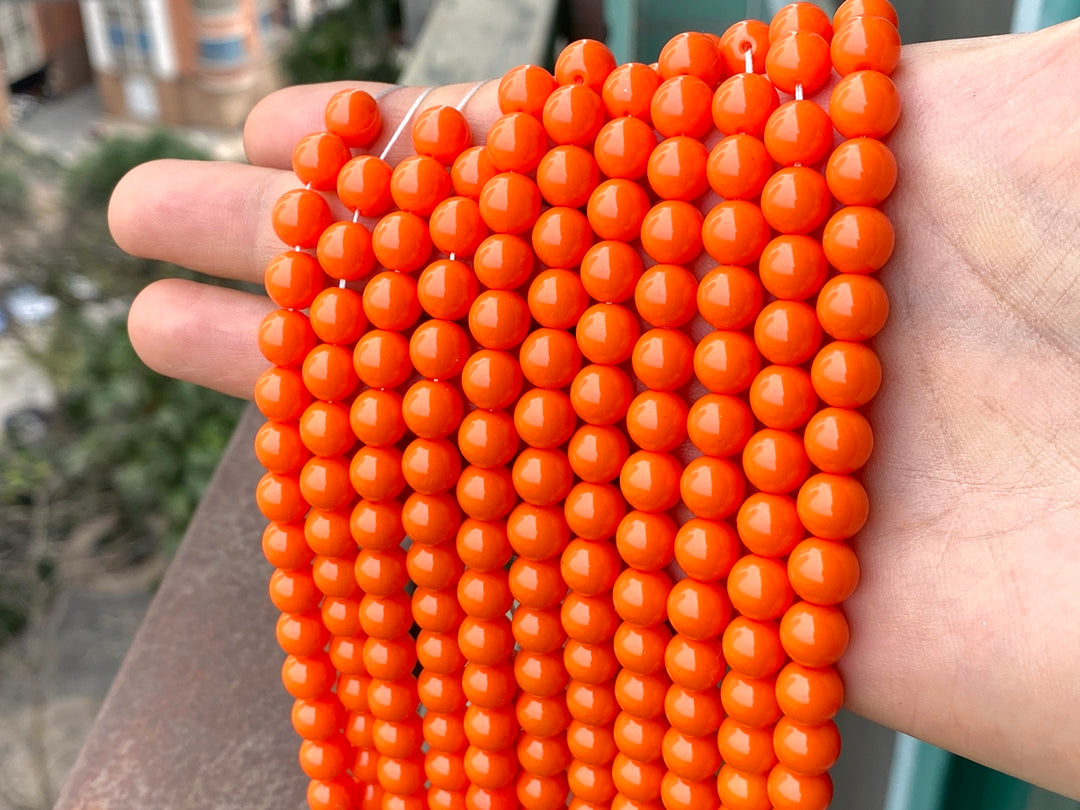 Orange color druk glass round beads, Lovely plain colour!