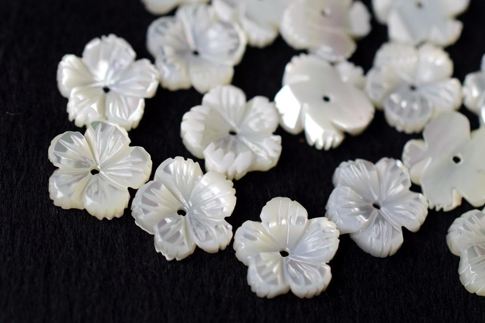High quality natural white mother of pearl carving 5 petal flower. White MOP flower.