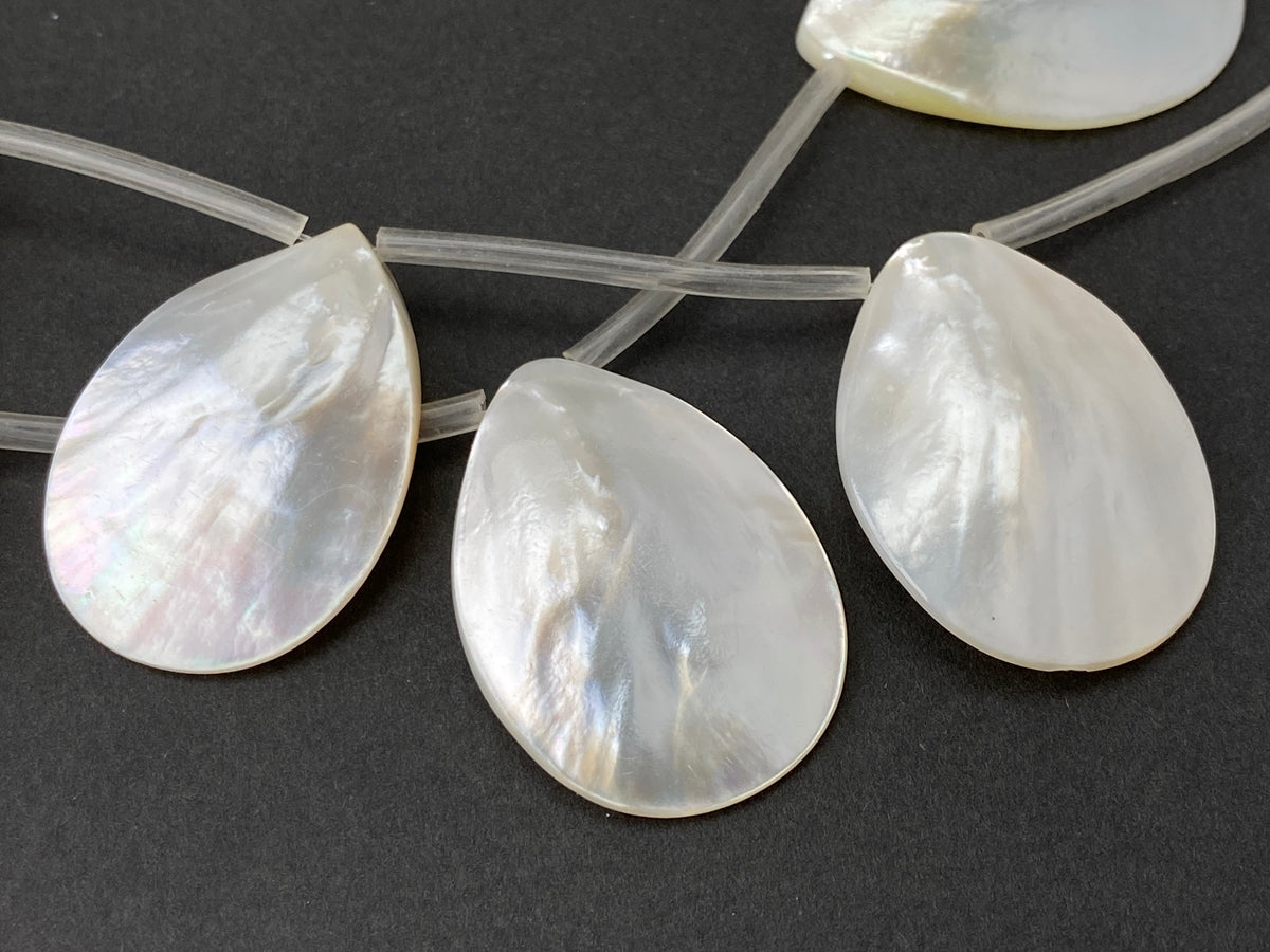 Natural white mother of pearl teardrop beads.