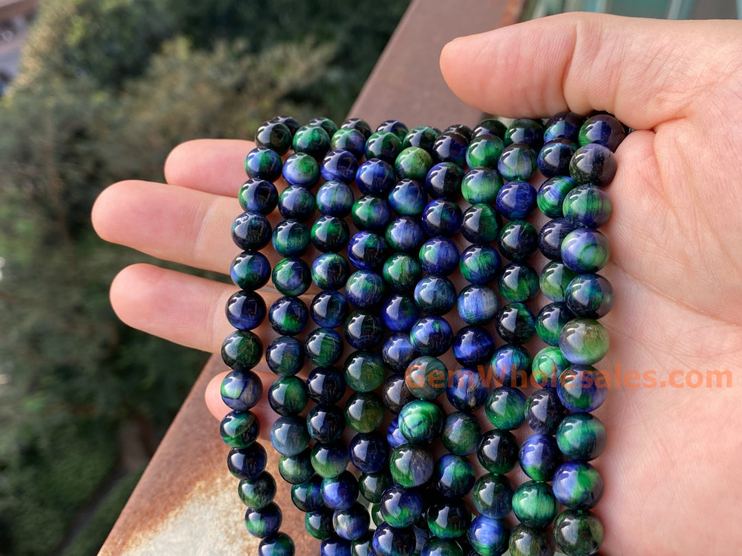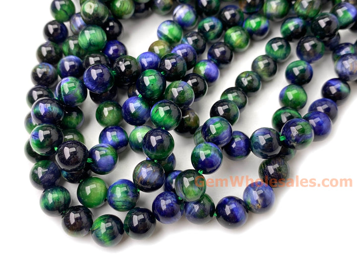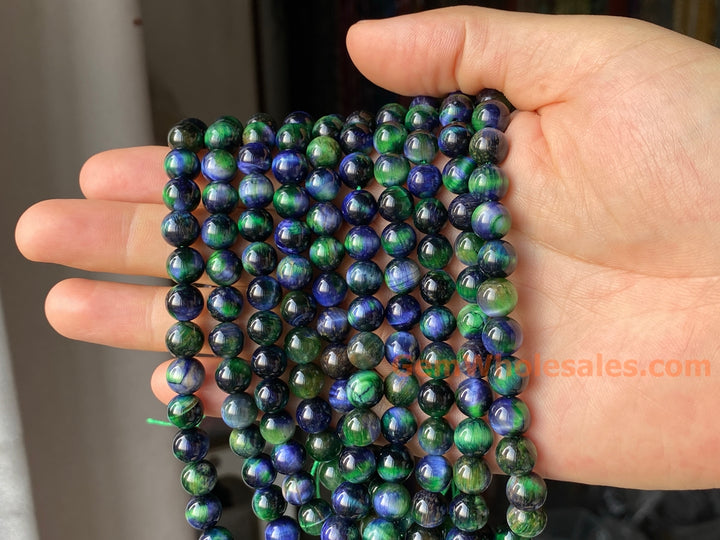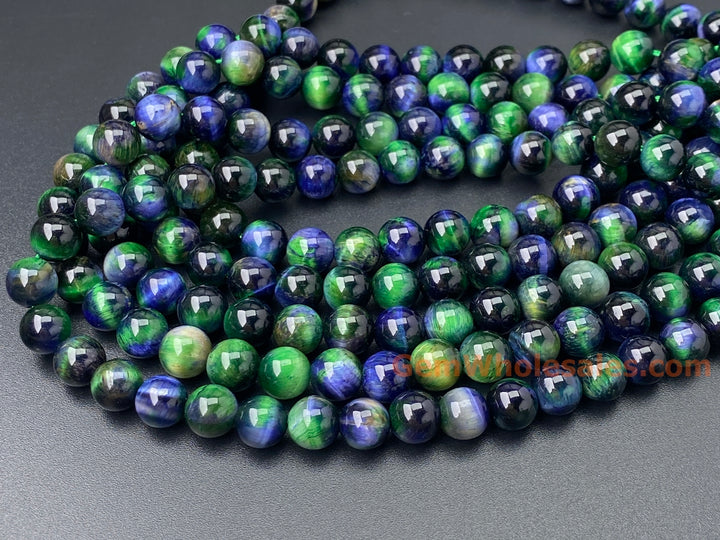 Dyed blue green multi/mixed color tiger eye stone beads.