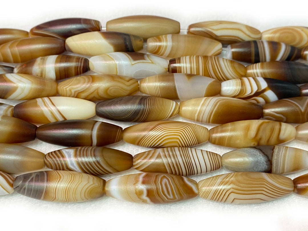 Couleur marron Perles ovales en agate rayée