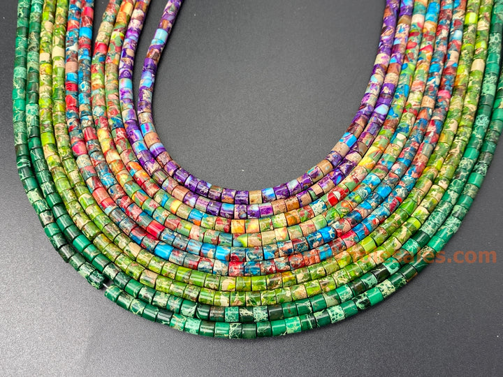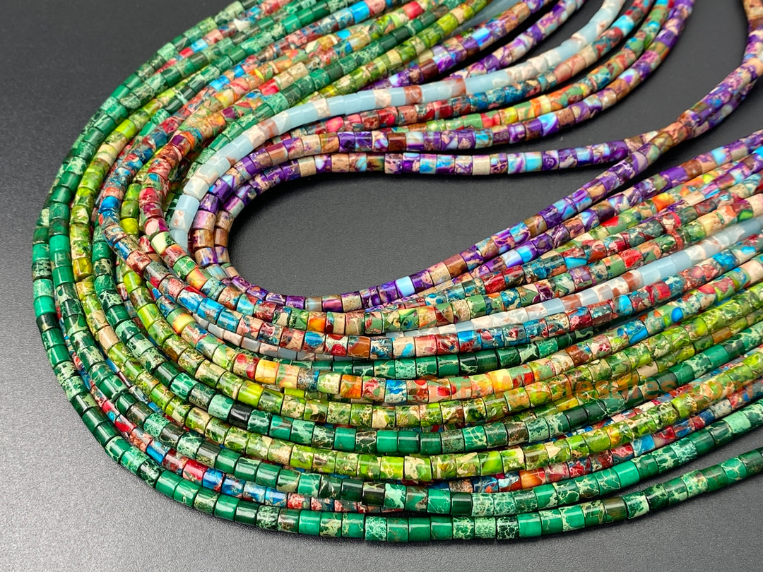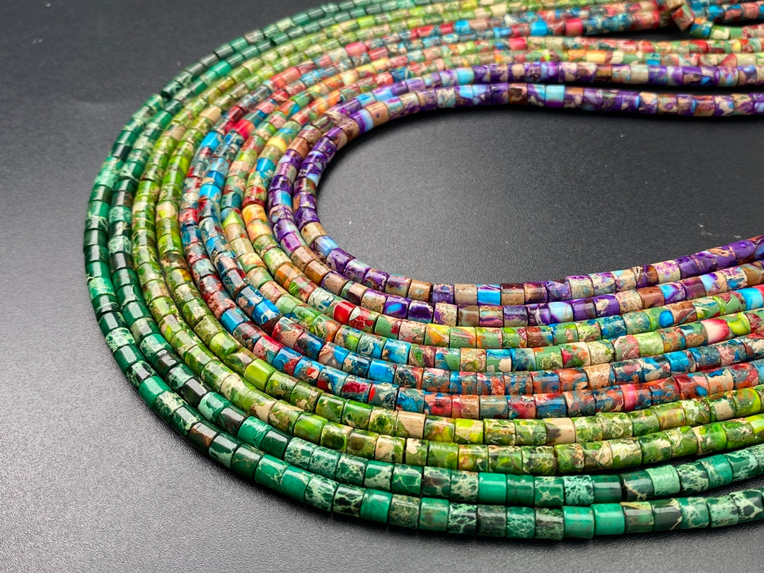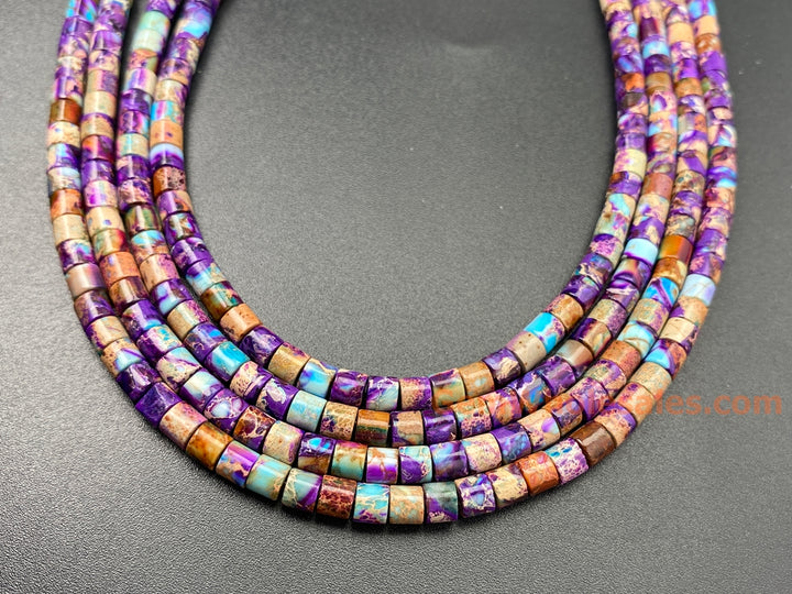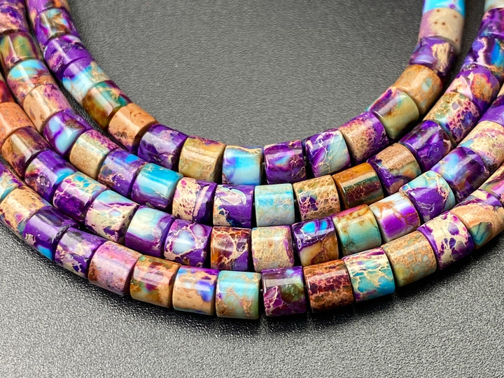Perles tubulaires en jaspe impérial sédimentaire bleu violet, également parfois appelées jaspe Terra.