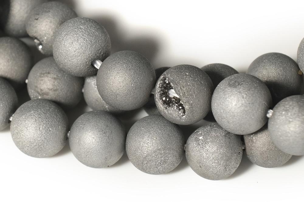 Les perles plus petites avec moins de druzy sur les perles, les perles plus grosses avec plus de druzy lourd.