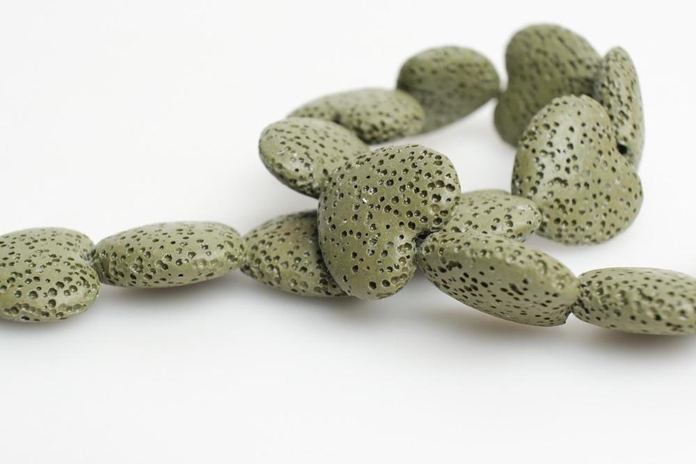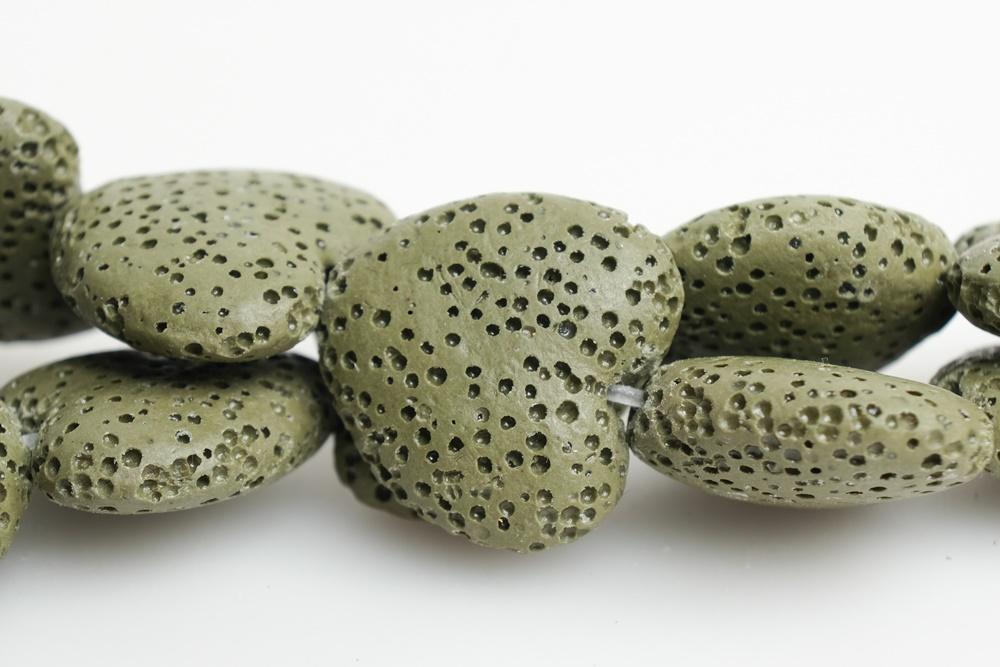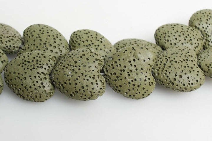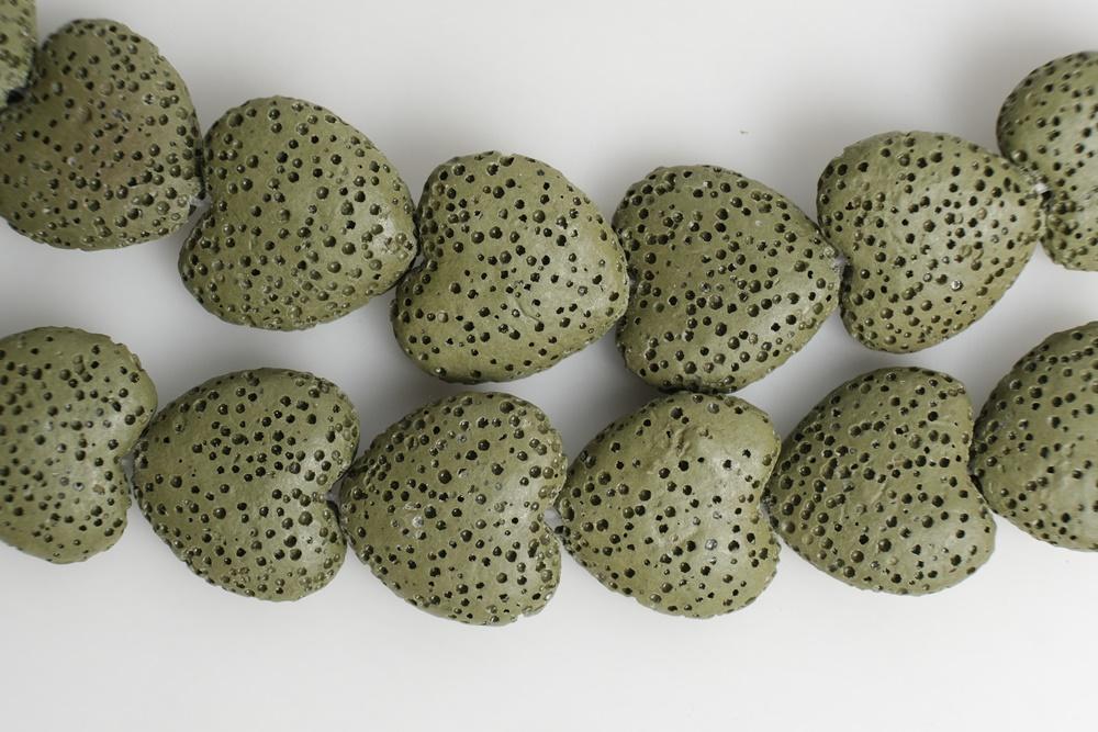 Perles de lave en forme de cœur de couleur vert foncé de haute qualité, pendentif en lave