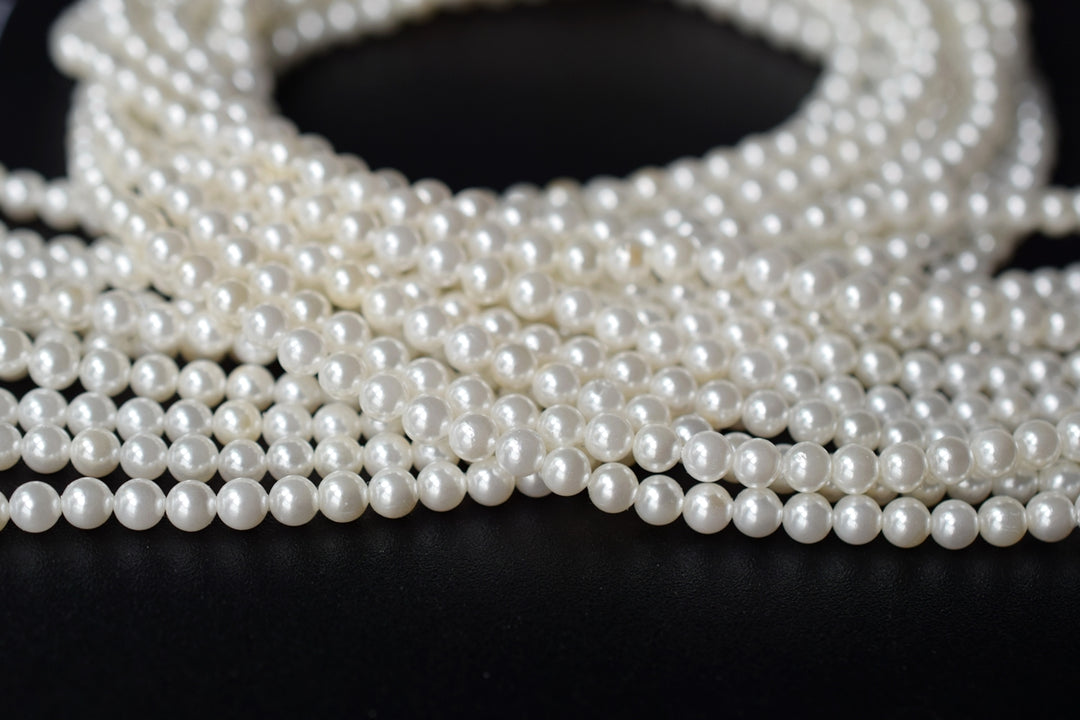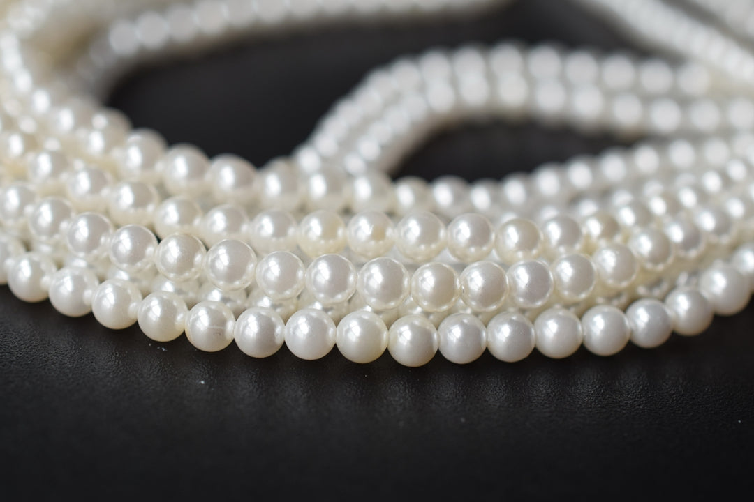 Nom de la pierre : Perle de coquillage, perles recouvertes d'un noyau de verre