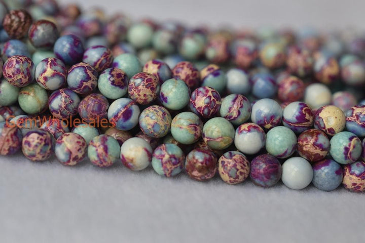 Perles rondes en jaspe impérial violet-vert, jaspe impérial sédiment marin, jaspe Aqua Terra