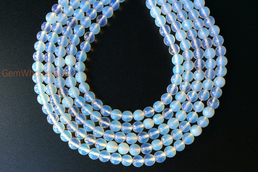 Très belles perles rondes de couleur blanc arc-en-ciel laiteux.