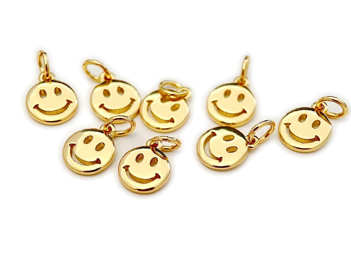 Mini Gold Happy Face Charm, Double Sided Smile Face Charms, Emoticon Face in Gold Round Dainty Smile charm